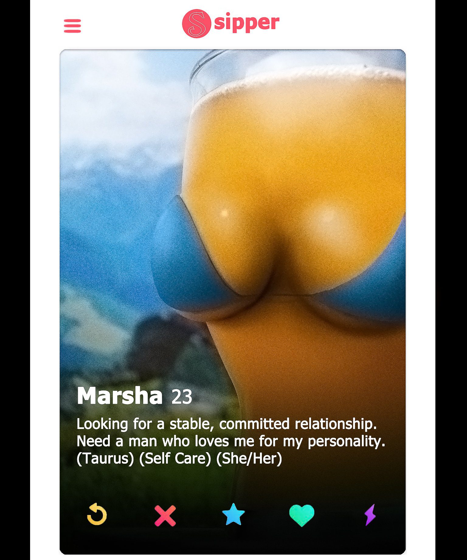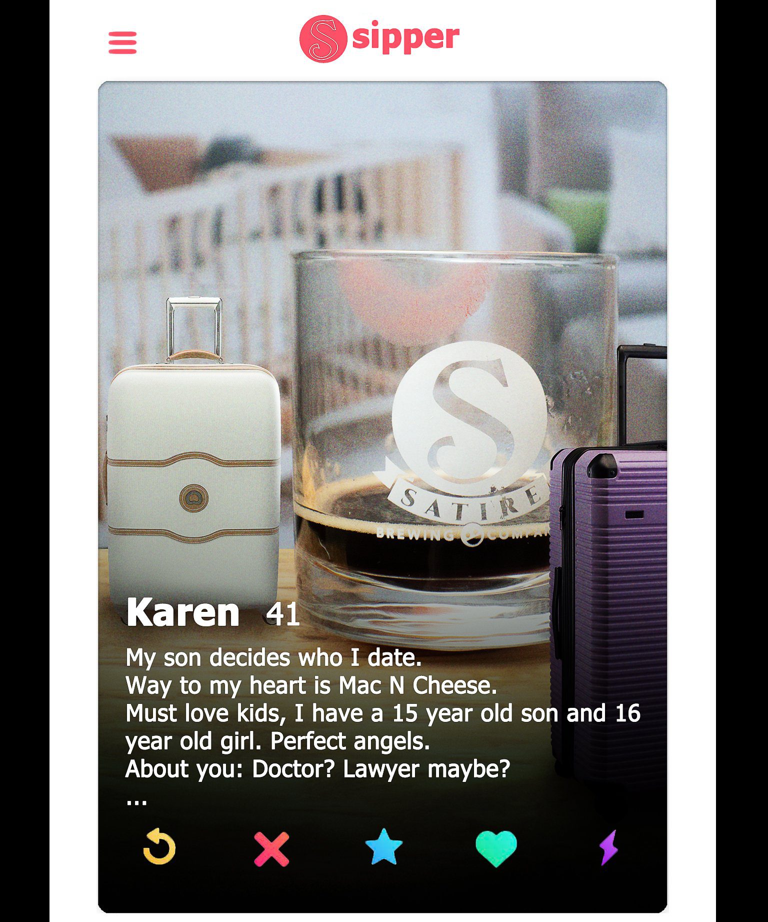Find your perfect match with Sipper by Satire, the new dating app for beers. LOL. But seriously, we love creating ridiculous and hilarious ways to laugh at ourselves and the society we live in. Laughter is the best medicine. *Looking for profile stereotypes for men.