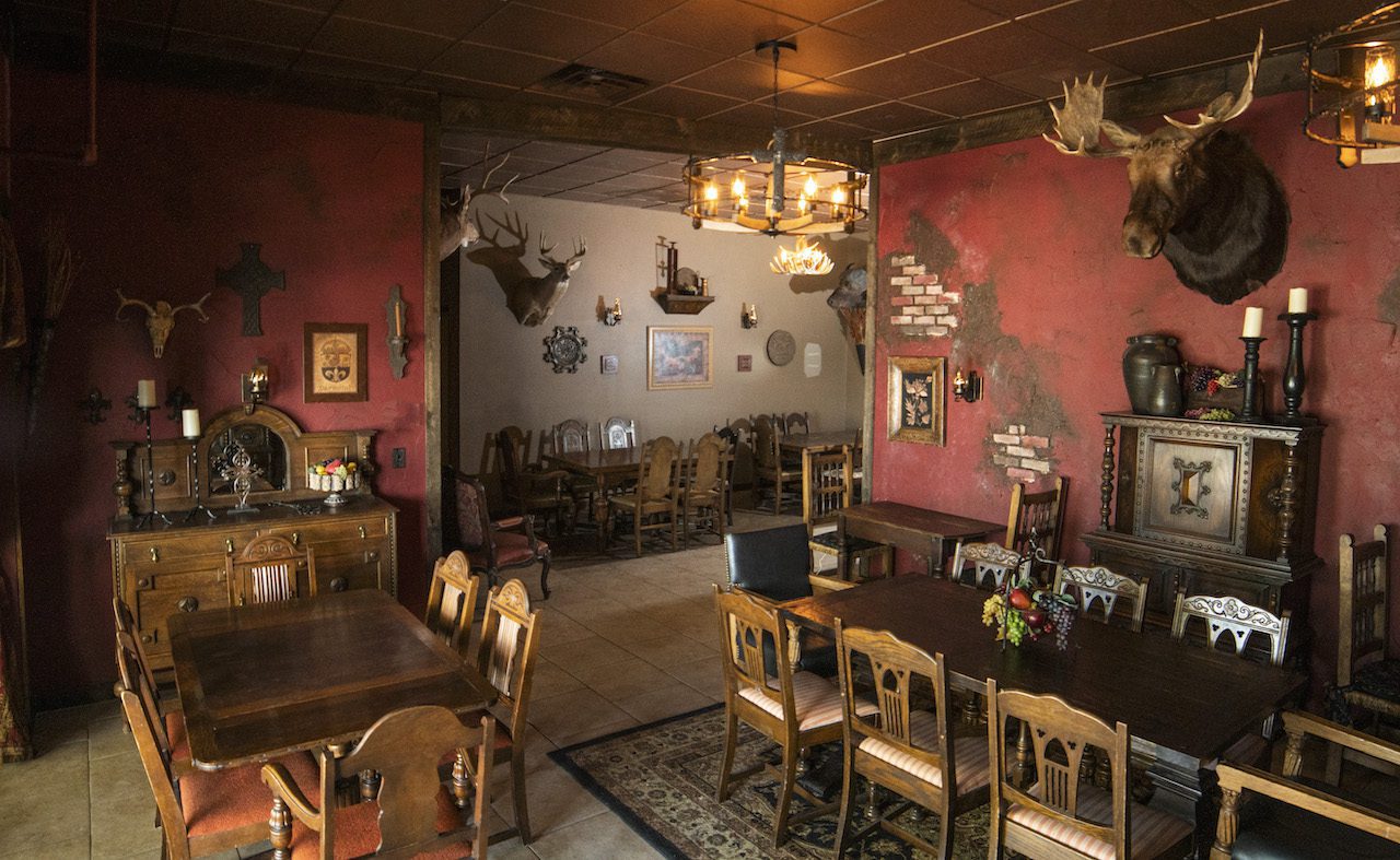 The Satire Moose Lodge is a new seating area that gives off the rustic vibe of an old cabin or lodge with antiques and trophy mounts that will take you back several centuries. You will feel like you have turned back time as you relax in the comfort of this space and share handcrafted brews and made-from-scratch food with friends.